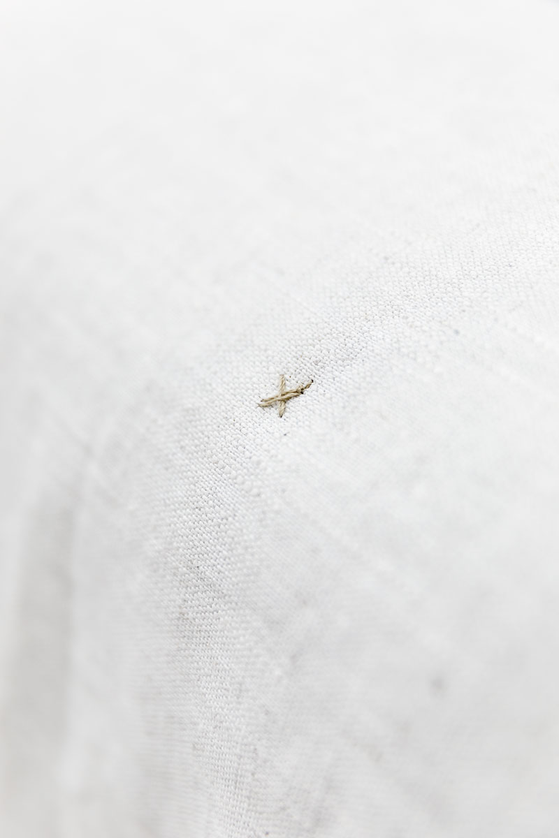 Canvas evokes feelings of leisure and bliss, like a summer's day spent on the beach. A warm, comfortable bed-end spread, adding a touch of style to the bed. A dazzling display of pure, monochrome white, padded with playful cross-stitches like tiny brush strokes, highlighting the canvas.