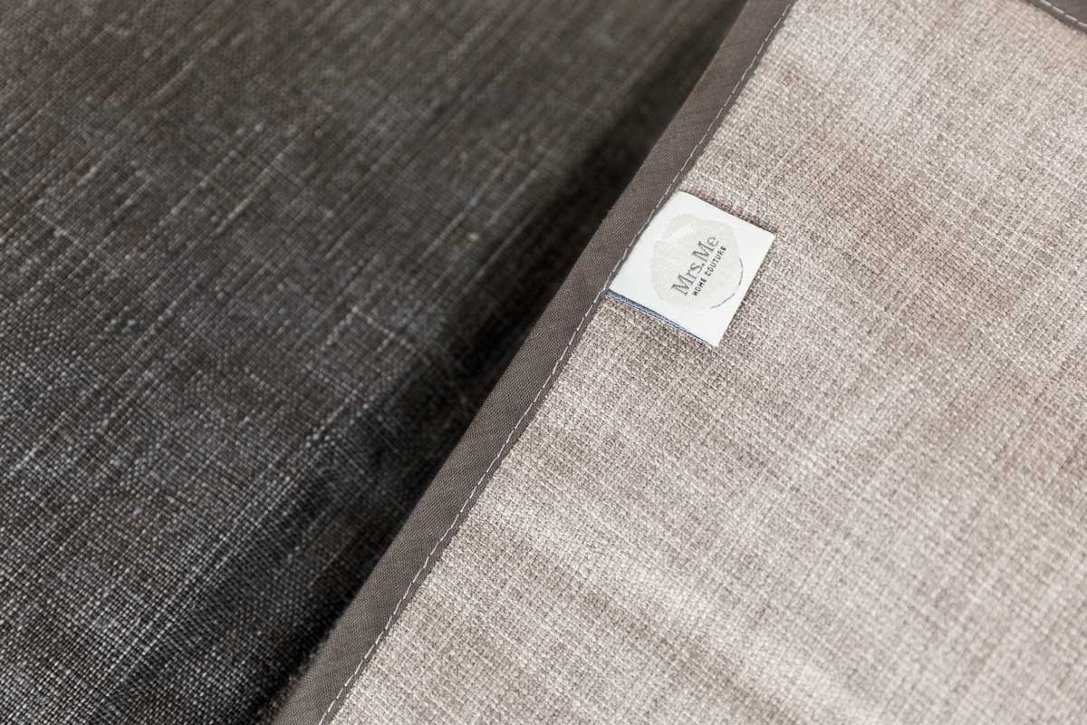 Cosmos is een gewatteerde bedsprei van een ruime maat 145 x 300 cm., uitgevoerd in gecoat linnen. De kleur Ebony, donker als ebbenhout en diep van toon, contrasteert fraai met de achterzijde in Taupe Melee en de markante bies.