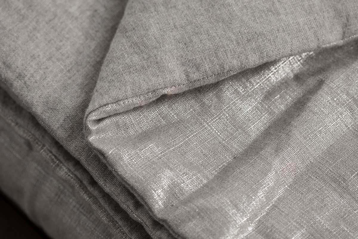 Sprei Silver Pad is al tien jaar tijdloos. Een Mrs.Me klassieker, die vanaf het prilste begin deel uitmaakt van de collecties. De bed-end spread is gemaakt van 100% linnen, sprankelend door de zilverkleurige coating, de achterzijde is een opgeruwde linnen / wol melange . Silver Pad is ideaal te combineren in ieder interieur en met elk kleurpalet.