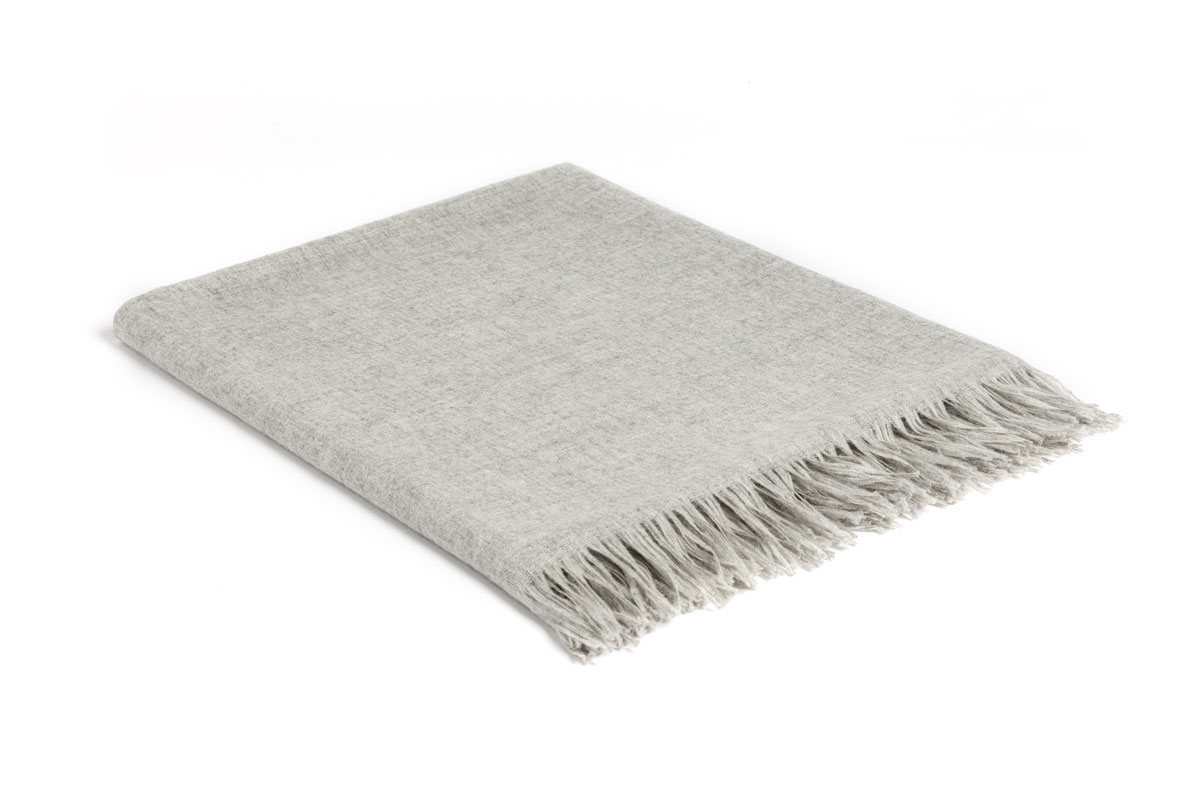 Nick is a generously sized blanket of no less than 180 x 300 cm, embellished by borders of elegant fringe. The very thin Light Grey wool alpaca melange drapes beautifully.
