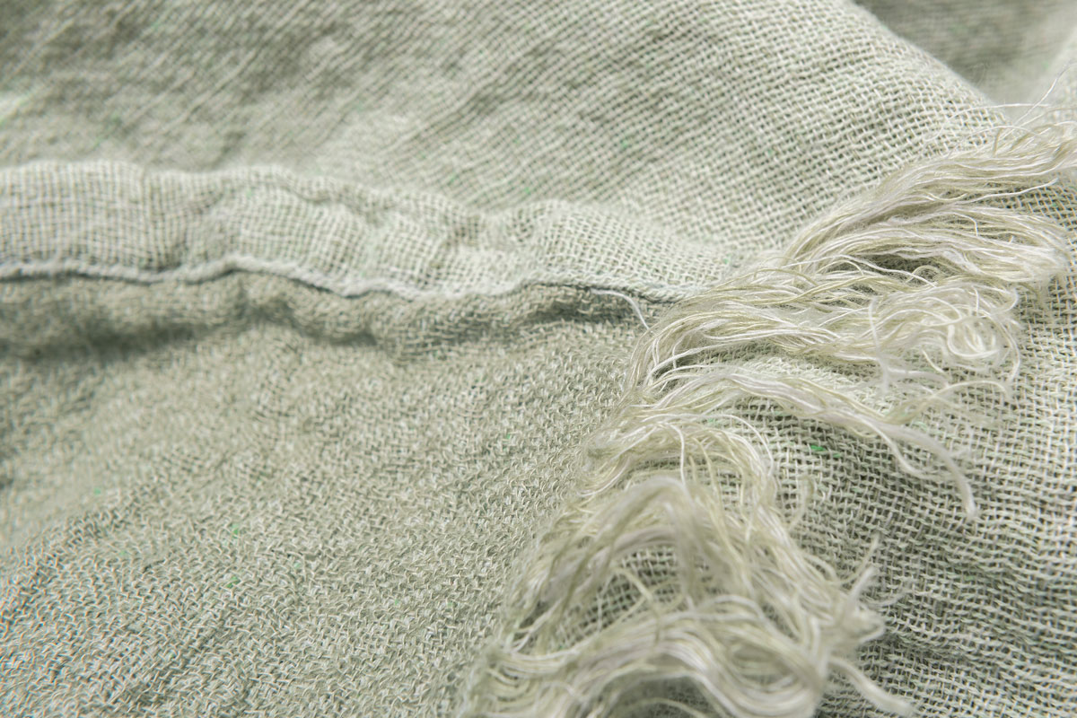 The reverse of the Eucalyptus green coverlet shows lighter nuances of the same colour, resulting in a beautiful,