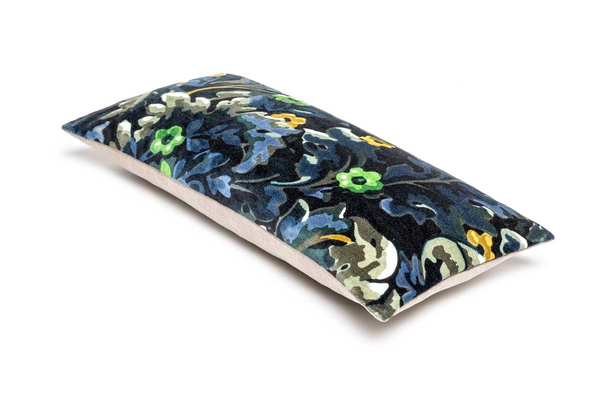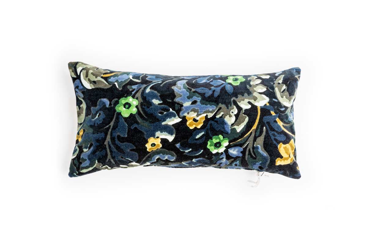 Dazzling cushion Fleur brightens the room with witty flowers and leaves on a soft bed of tactile velvet, a mix of cotton, polyester and viscose. Its size 30 x 60 cm is a convenient support for the lower back.