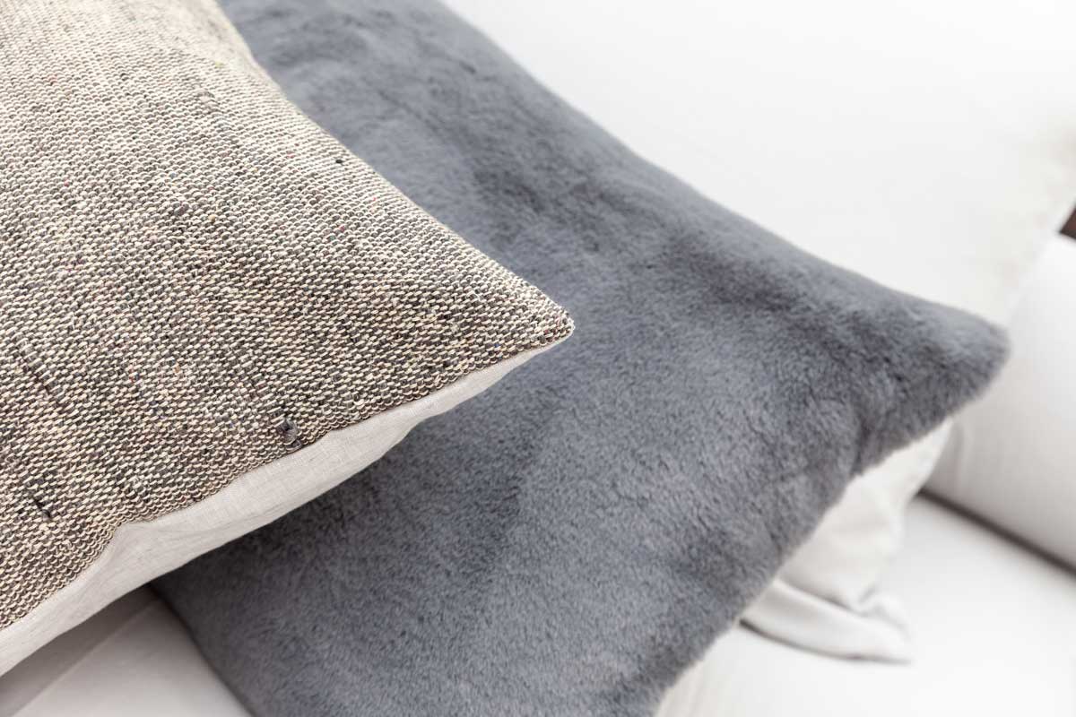 Cushion Floss is amazingly versatile, showing its peace silk in many wonderful ways. This fabric is woven with irregular silk yarns without the typical shine. While its fibres have a more sturdy, matte look, the weave retains the same smooth, silky feel. The cushions are available in Multicolour or Grey.
