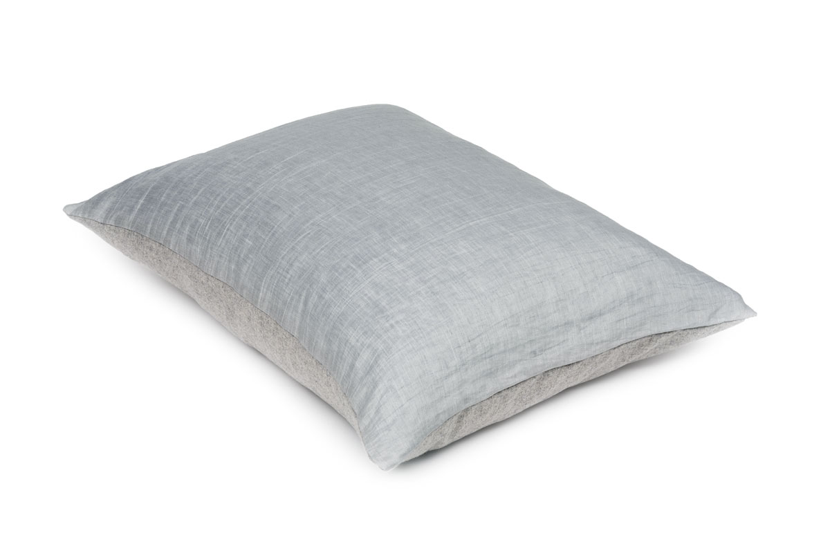 Reversible cushion Infinity displays an intriguing array of textures. One side expresses an immaculate sense of charm in crinkled linen with a subtle shine. The other side is executed in a mélange of natural wool and polyamide nylon with Global Recycled Standard certification. The cushion cover is filled with 100% recycled down and feathers, certified by the Global Recycled Standard. Cushion Infinity adds a convincing personal touch to the bed or sofa or any favourite feature. This is what ‘stylish’ feels like.