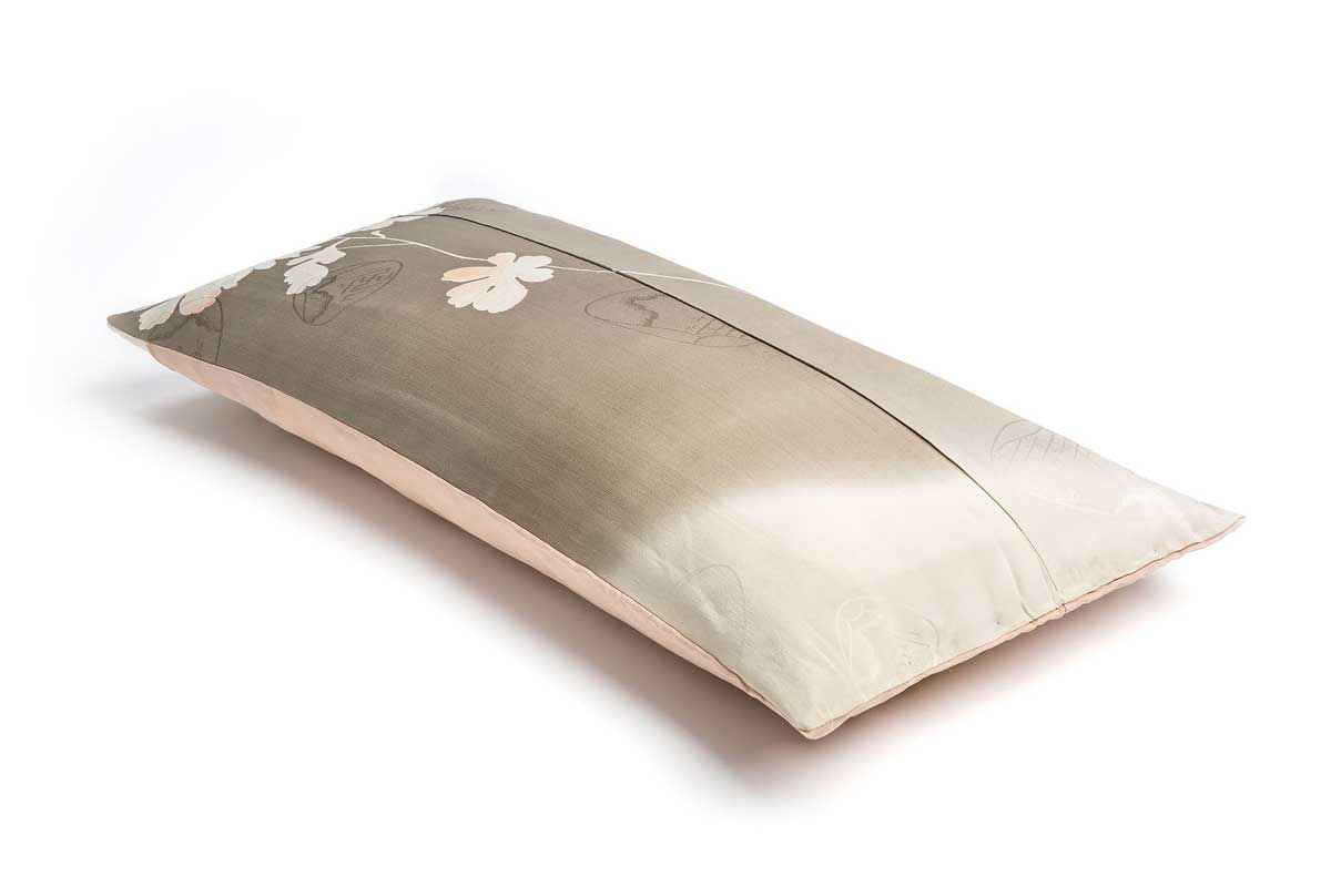 Cushion Kimono celebrates tradition. Authentic kimono’s are respectfully transformed into icons of extraordinary design. The delicate silk displays a variety of decorations and colours, handpainted or embroidered.