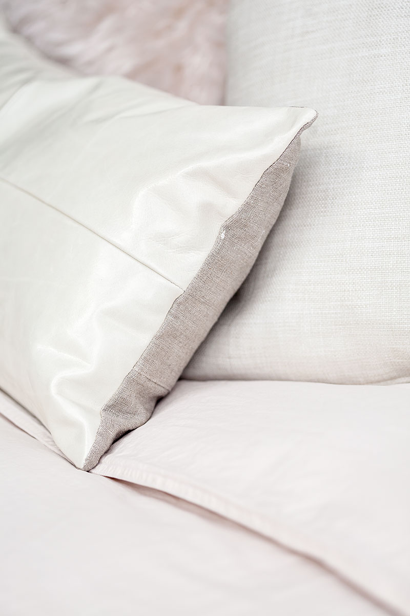 In the setting Powder Room the bed is dressed with leather cushions Pavilion Milk. The other articles on this bed can also be viewed on the POWDER ROOM page.