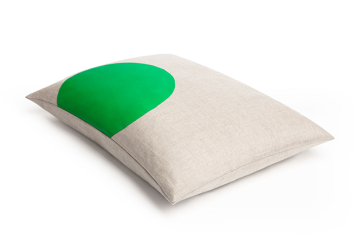 Colour Blocking sets the tone. On linen cushion Pop brightly coloured circles of soft leather dance on a beige linen background. Tune in to the rhythm of summer with Mrs.Me’s ode to colour.