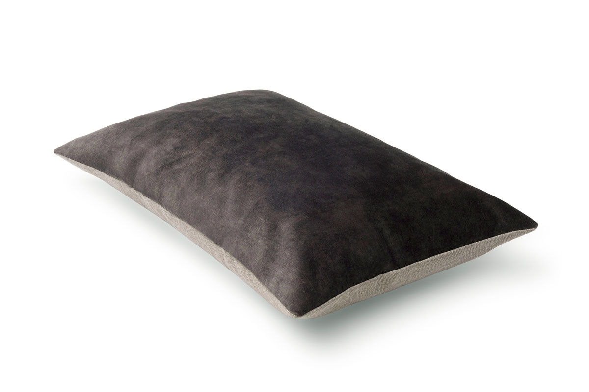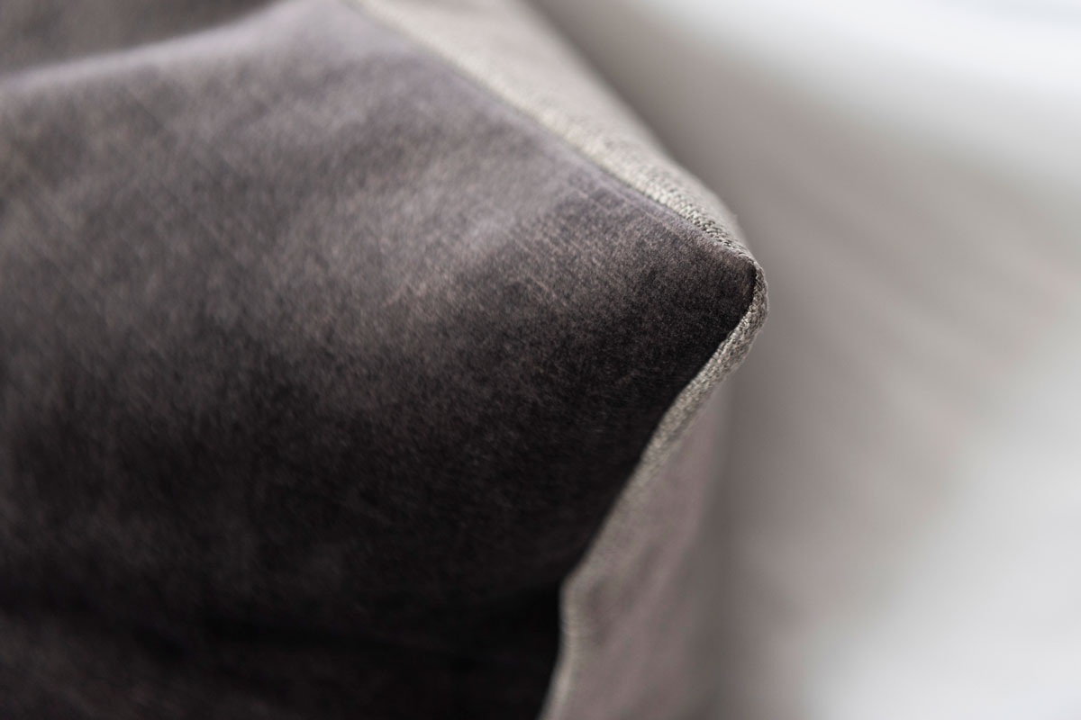 The shades of the heavy velvet front of cushion Porter show a captivating range of tonal values. The Sage coloured reverse renders the look and feel of classic upholstery.