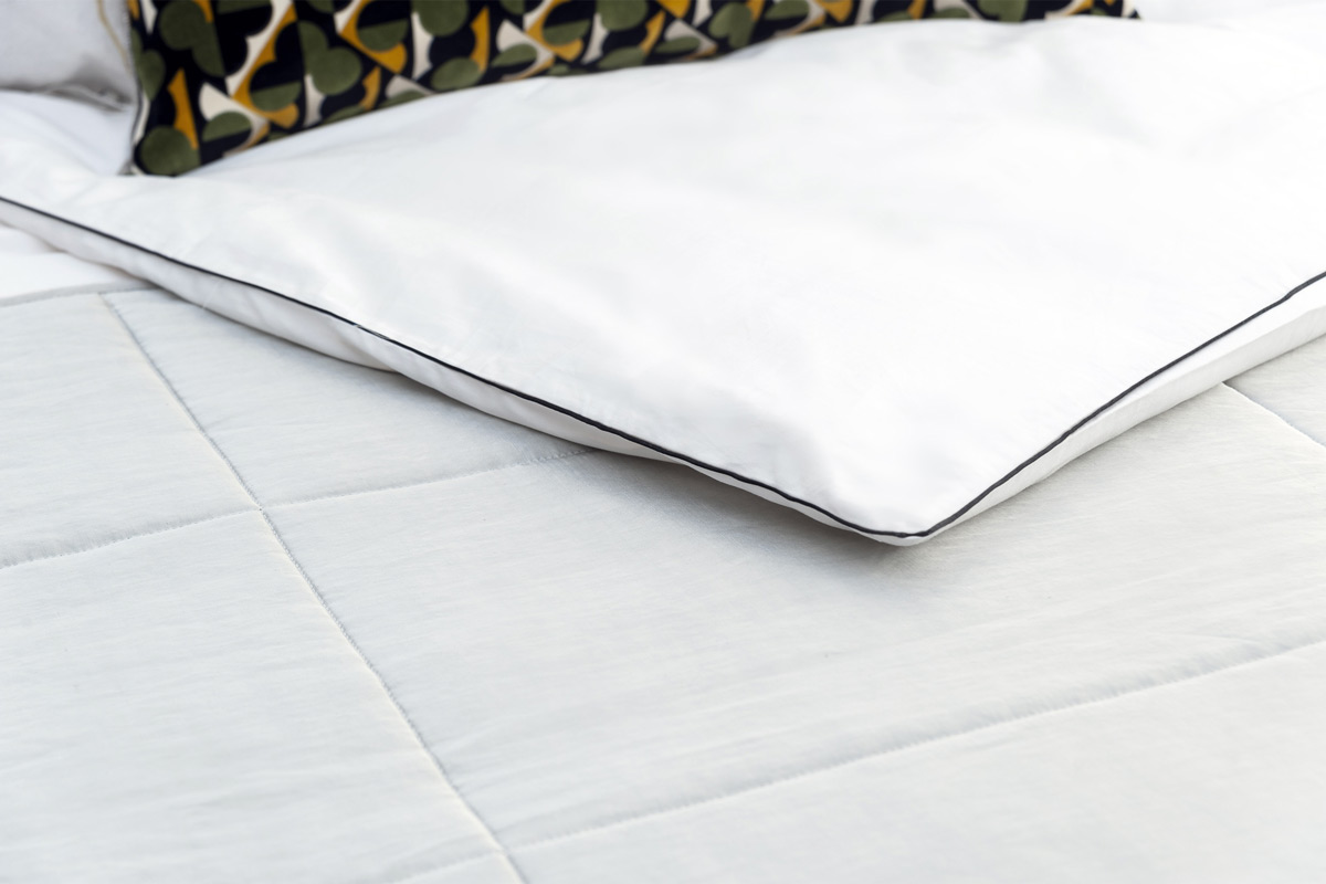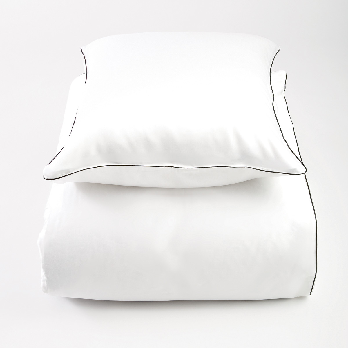 Dekbedset Cocoon bestaat uit een zacht glanzend dekbedovertrek en slopen in de kleur Pearl. Deze fijne set is rondom afgewerkt met zwarte micro piping. Cocoon is uitgevoerd in Tencel, de merknaam voor de stof lyocell. Tencel draagt het Europese Ecolabel en is 100% natuurlijk. Het duurzame materiaal wordt gemaakt van cellulose uit eucalyptushout en is volledig biologisch afbreekbaar. Tencel heeft een zijde-achtige glans en valt soepel, is huidvriendelijk en heeft een goede vocht- en warmteregulatie.