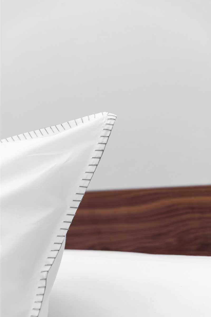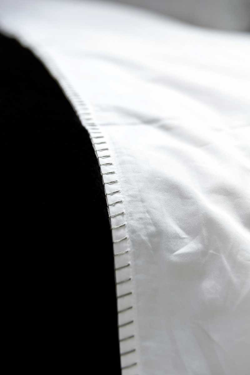 Kwaliteit is de essentie van dekbedset Feston. Een moderne klassieker met een verfijnde afwerking. De set is uitgevoerd in luxe witte katoen percale 400 thread count en omrand met een subtiel contrasterende festonsteek in neutraal grijs.