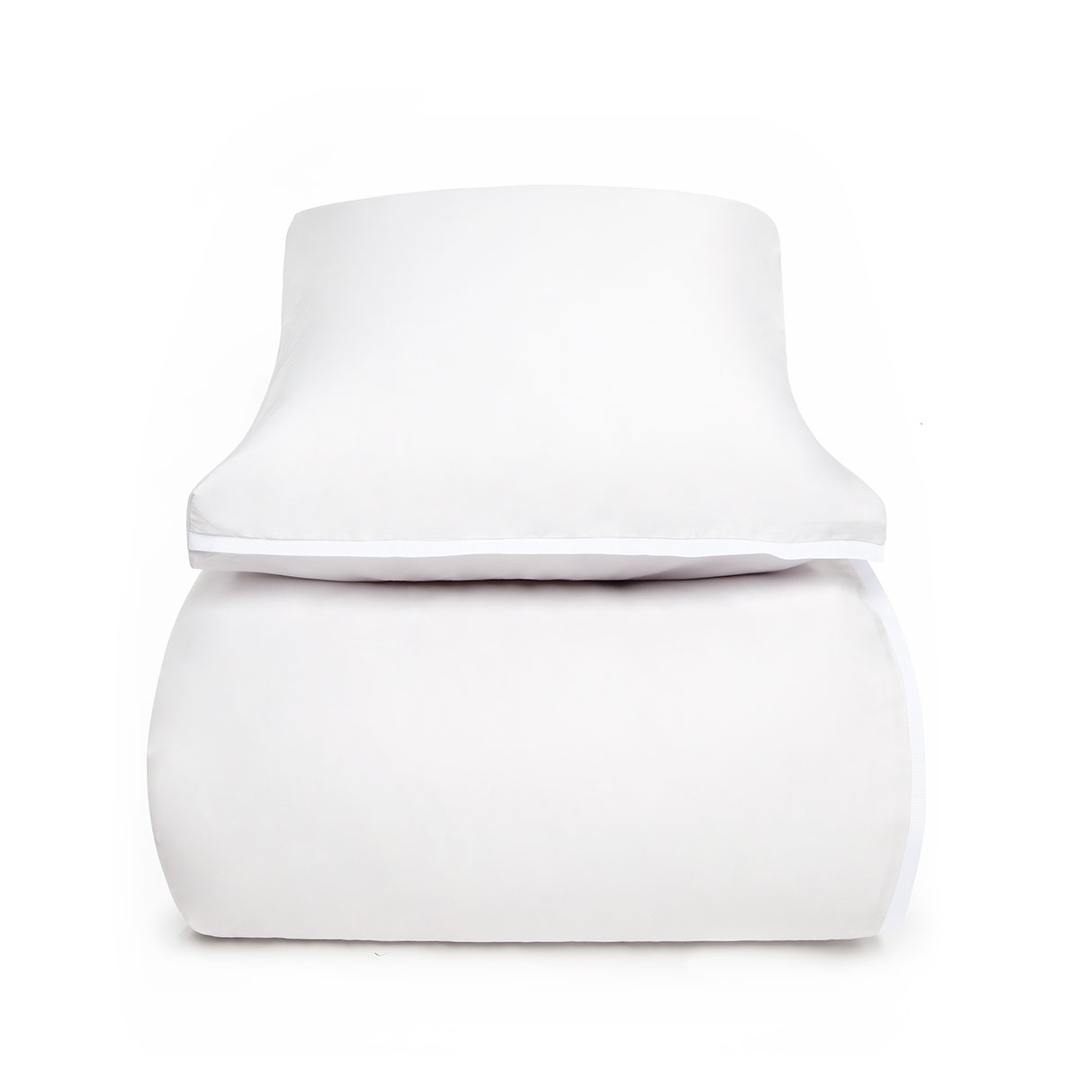Dekbedovetrek Savile is uitgevoerd in parelgrijs 300 thread count katoensatijn en afgewerkt met wit-glanzend ripsband.