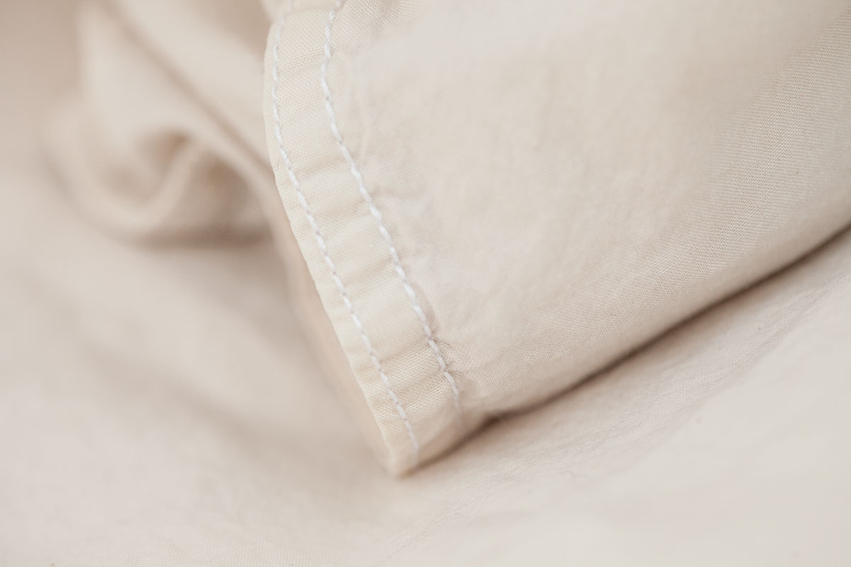 De dekbedovertrekken, slopen en nekrolhoezen zijn gemaakt van gewassen 200 thread count perkal katoen. De stof heeft een levendige kreukelfinish en is strijkvrij – wel zo gebruiksvriendelijk.