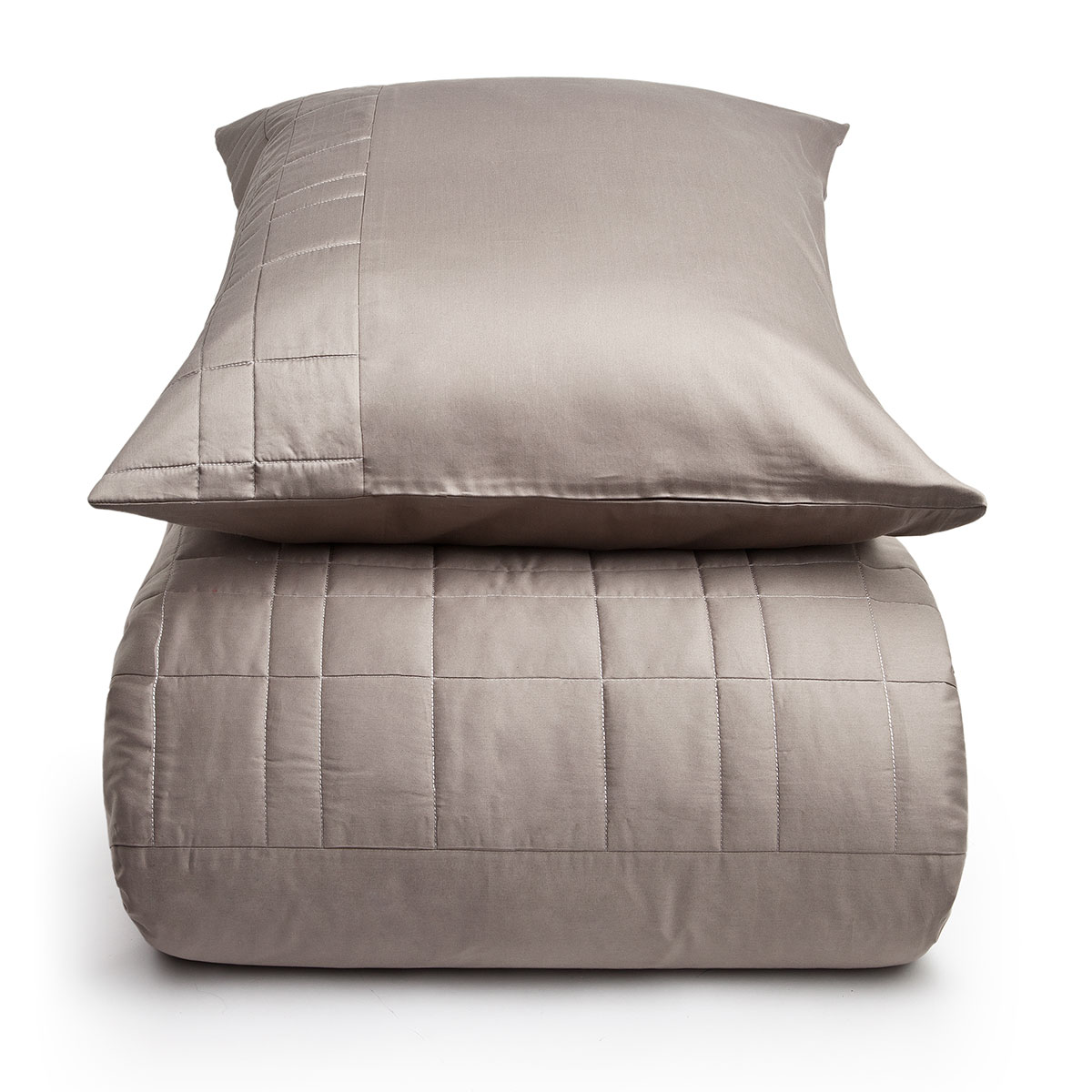 The duvet covers and pilowcases Travis have a padded top with quilted blocks. This style is made of 300 thread count Egyptian cotton sateen that is very soft and has a subtle sheen due to the satin weave.