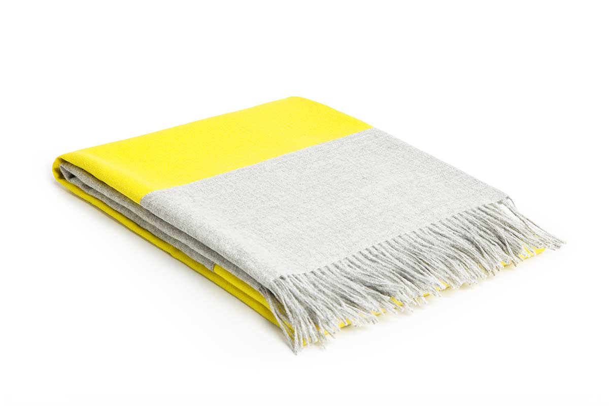 Colour Blocking zet de toon. Plaid Jazz maakt een grafisch statement in behaaglijk zacht baby alpaca. Net als de plaid zijn de bijpassende sierkussens Jazz afgewerkt met speelse franje.