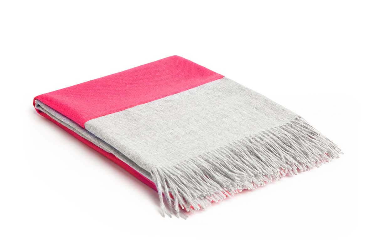 Colour Blocking zet de toon. Plaid Jazz maakt een grafisch statement in behaaglijk zacht baby alpaca. Net als de plaid zijn de bijpassende sierkussens Jazz afgewerkt met speelse franje.
