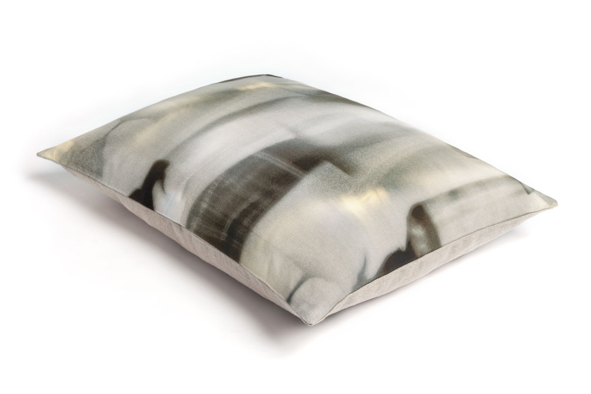 De markante fotografische print van sierkussen Ambrose is exclusief voor Mrs.Me ontwikkeld door beeldmakers Went & Navarro. Een mengeling van abstract en herkenbaar in natuurlijke nuances grijs-groen. Het paneel is een willekeurige uitsnede uit een grotere afbeelding. Dat maakt ieder kussen uniek.