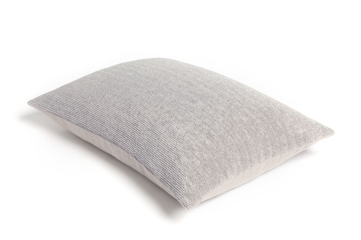 Sierkussen Armor heeft een voorpaneel van heel fijn gebreid raffia in de kleur Lichtgrijs. Dit bijzondere materiaal doet qua structuur denken aan maliƫnkolder. De achterkant is van 100% linnen.