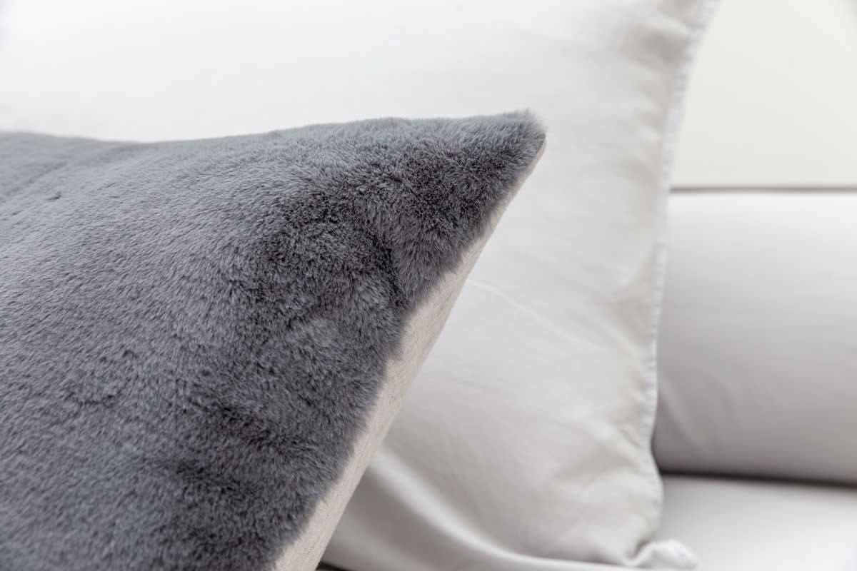 Blikvangers van bont-zonder-bont, met een achterzijde van gemĂȘleerd 100% linnen. Sierkussens Caprice voegen zachter toe aan zacht, in de tinten Soft Taupe en Soft Grey.