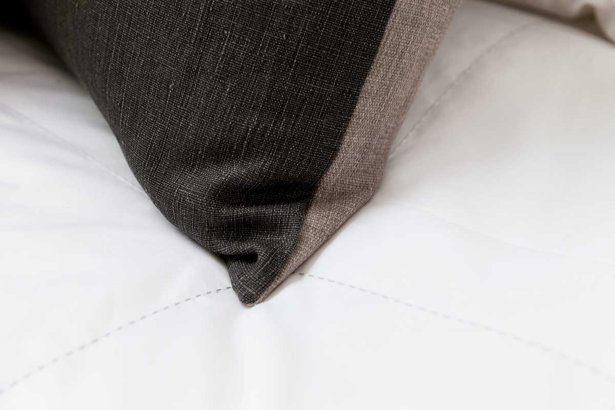 In setting Avalon is het bed opgemaakt met bedsprei en sierkussens Cosmos. De andere producten op het bed zijn ook te bekijken op de Avalon pagina.