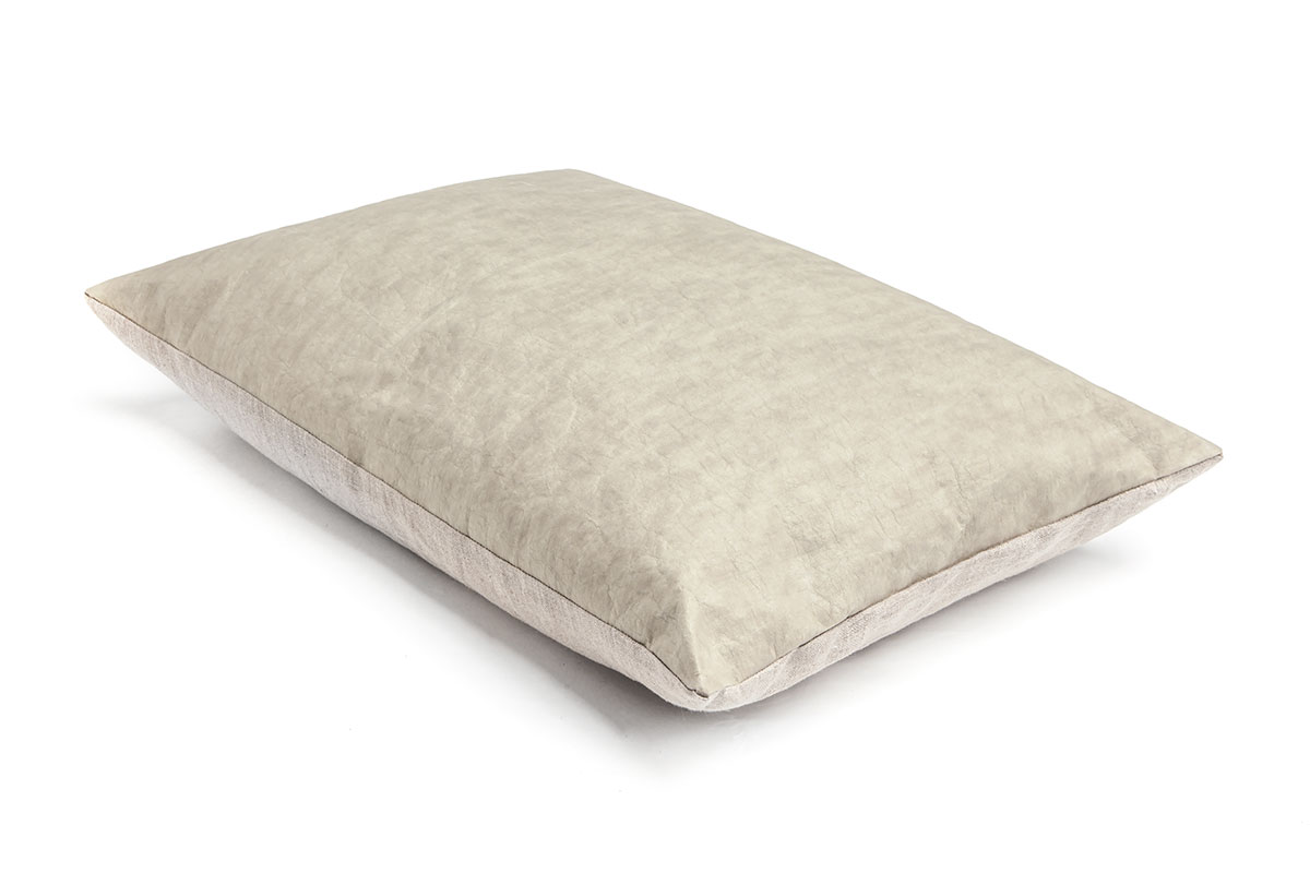 Kussen Paper voelt aan als stevig katoen, maar is toch onmiskenbaar gemaakt van papier; een vlekje gum je zo weg, maar deze kussens kunnen ook gewoon worden gewassen. In de kleuren sage en off-white geeft dit kussen een tijdloze, frisse touch aan slaapkamer en lounge.