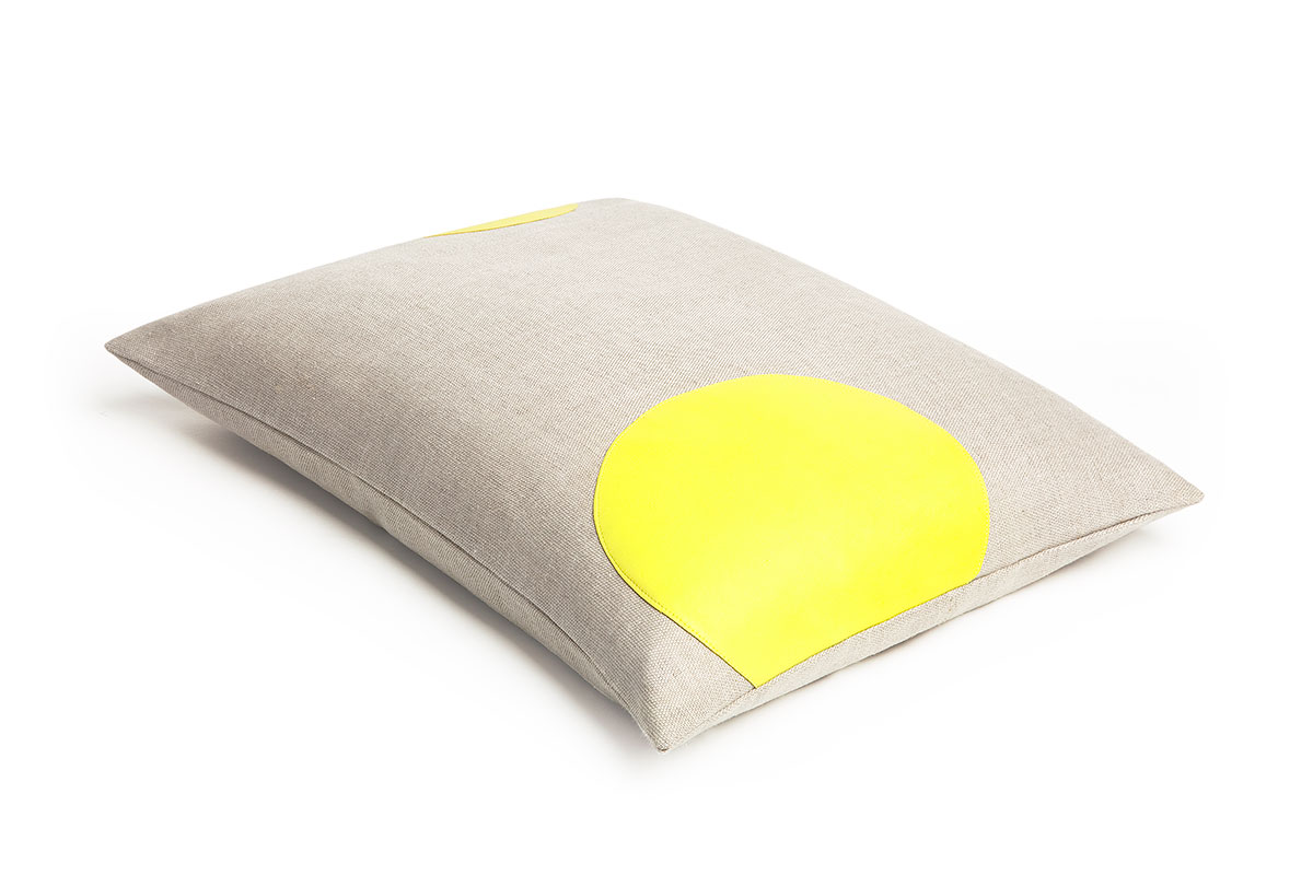 Colour Blocking zet de toon bij dit sierkussen. Op sierkussen Pop dansen felgekleurde cirkels van lamsleer op een ondergrond van beige linnen. Stem af op het ritme van de zomer met Mrs.Me's ode aan kleur.
