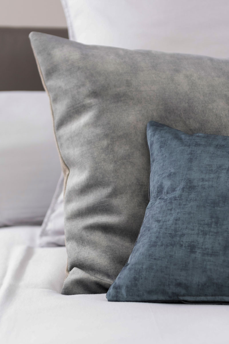 Sierkussen Porter is uitgevoerd in markant kortpolig velours Silvermoss met subtiele kleuraccenten. Voor een rustige sfeer of in kleurrijke combinaties.