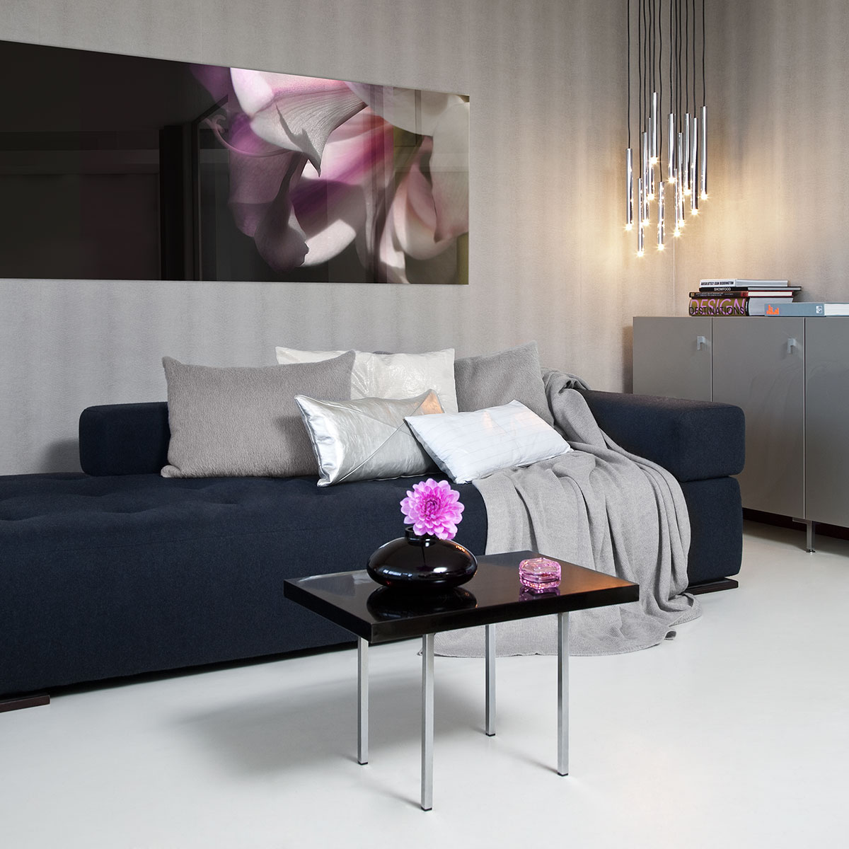 In setting Oasis is het bed opgemaakt met sierkussens Teddy. De andere producten op het bed zijn ook te bekijken op de Oasis pagina.