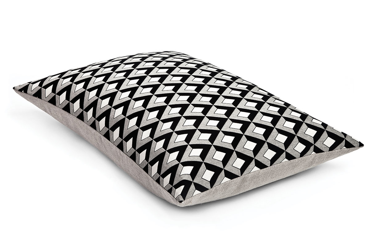 Sierkussen View is gemaakt van een jacquard geweven stof. Het dessin doet denken aan de visuele op-art beweging uit het midden van de jaren zestig. Dit sierkussen is een echte eyecatcher op elke bank.